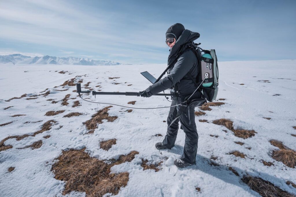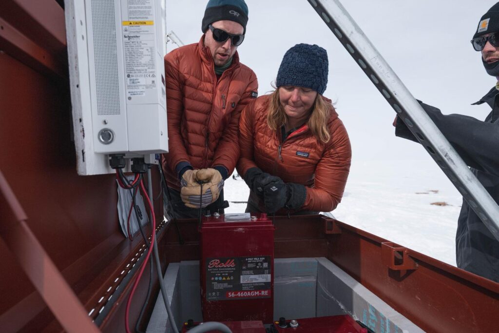We hauled out a 15-foot-tall aluminum frame with side arms, guy-lines, cement anchors, eight deep-cell batteries (each over 100 pounds), four large solar panels, steel spikes, and a massive electrical enclosure. It’s designed to measure the invisible: carbon dioxide and methane escaping from the thawing ground. These gases, released from what was once permanently frozen soil, are potent drivers of climate change.