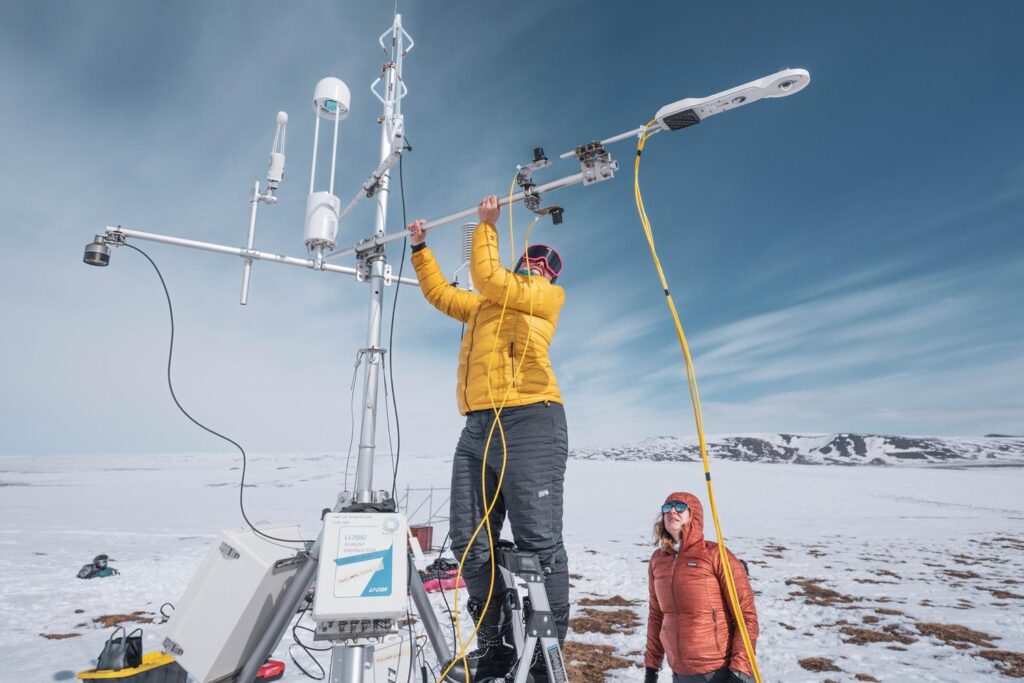 I’m here as a snow scientist, a friend, and a member of the POW Science Alliance, invited by ecologist Jenny Watts—an expert in carbon flux and fellow POW scientist—to help install a flux tower at a permafrost thaw slump, the first in the Arctic to evaluate methane and carbon dioxide emissions from an area of rapidly thawing, collapsing permafrost. Our team, including Kyle, Christina, and Kai, is here to investigate the rapidly changing Arctic, where climate change is not a future threat—it’s a daily reality.