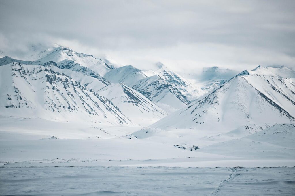 It’s a frigid morning at Toolik Field Station on Alaska’s North Slope. Hoarfrost glitters across the snow surface, and the low sun paints the tundra in soft watercolor hues. My breath clouds the air as we load up snowmachines with sleds packed full of equipment. We’re headed out to Jenny’s field site—two to a machine—crossing a vast, sparkling expanse of Arctic snow. Caribou graze nearby under the pale glow of the Brooks Range, its jagged peaks rising from the fog like ancient sentinels.