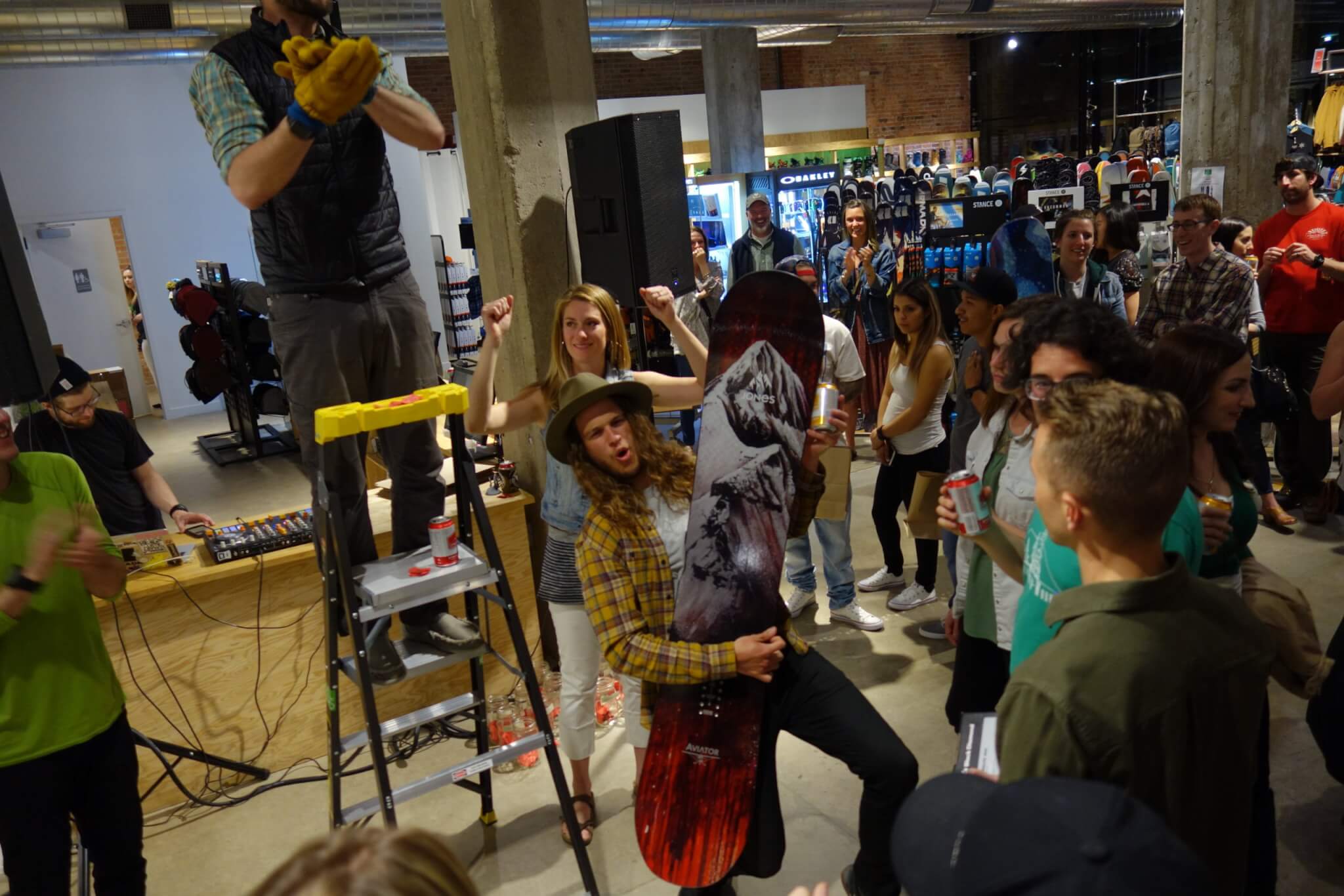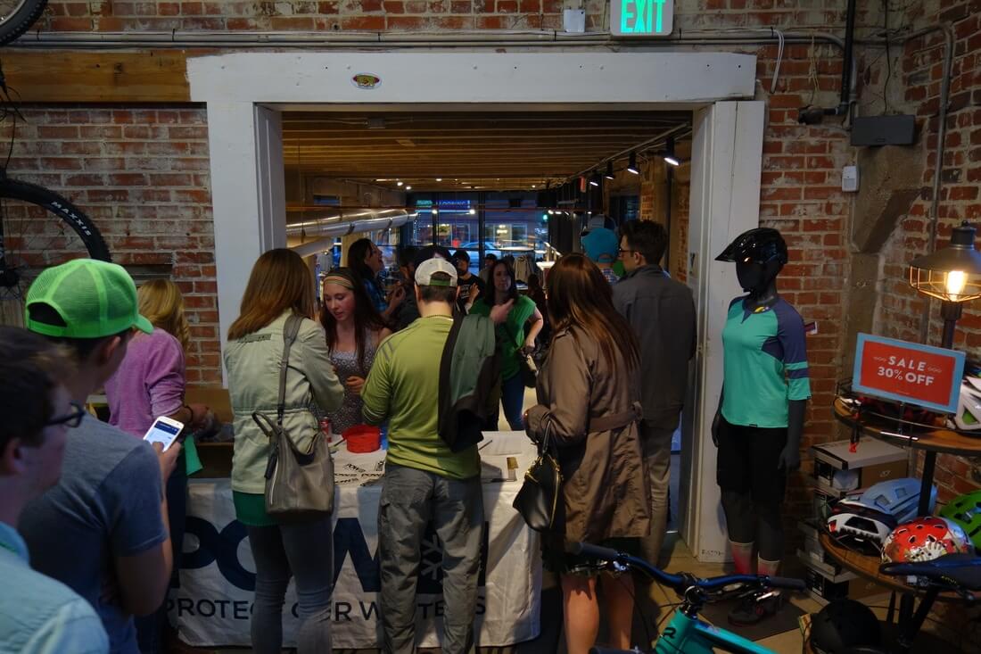 As the evening began to unfold, people started filing through the doors to purchase beer and raffle tickets and take a shot at winning some art in the silent auction. With music flare provided by Dan Grund, bites from Zeps Epiq Sandwiches and delicious beer being served from Upslope Brewing, the space at evo was certainly filled with good vibes. Once the time came to draw raffle tickets and give away some gear, the crowd was alive with energy and stoked to win some great prizes. It made for a truly special experience to be a part of.
