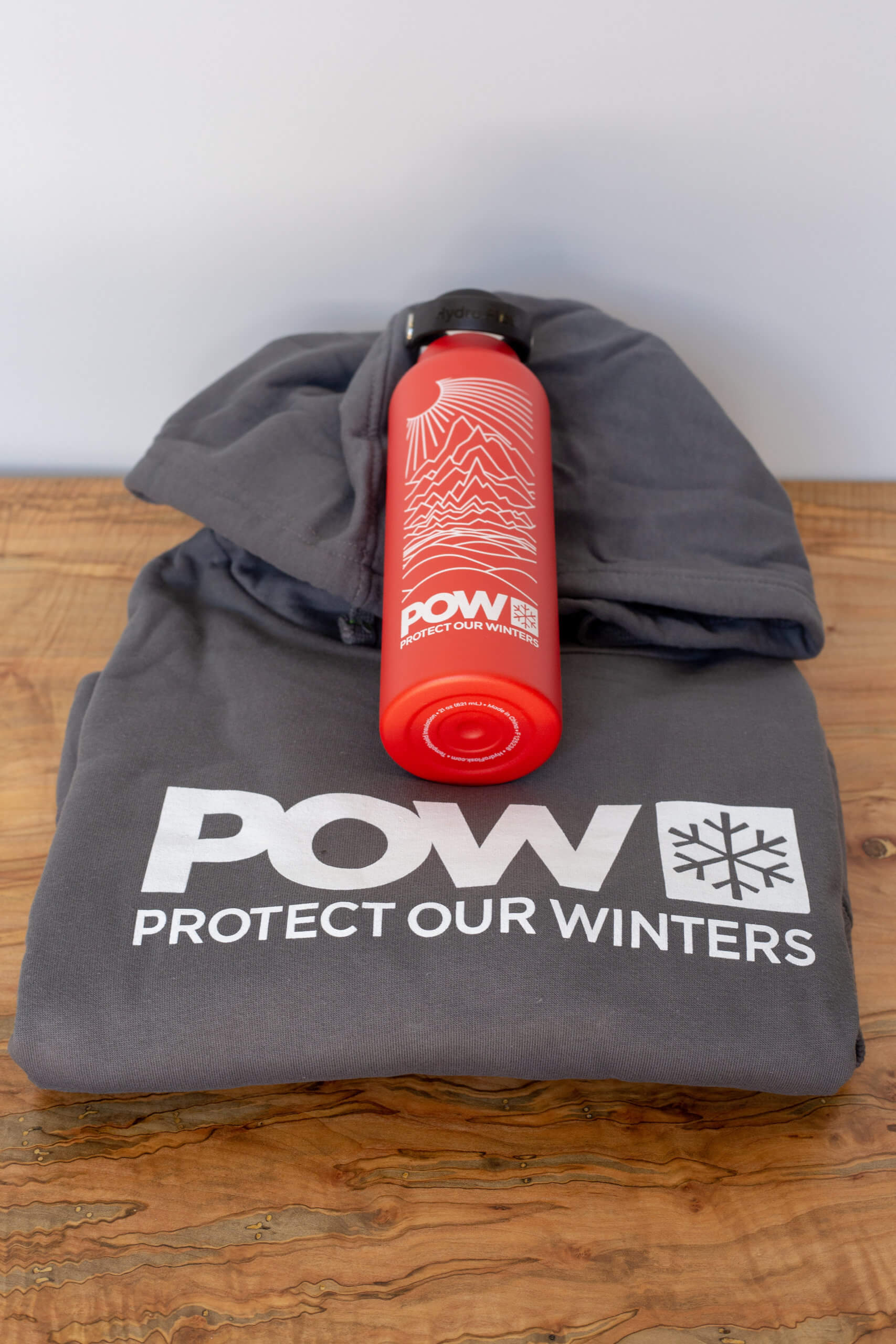 - Protect Our Winters sweatshirt and water bottle
